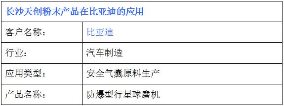 摘要:比亞迪在長沙天創(chuàng)粉末采購一臺防爆型行星式球磨機,用于安全氣囊原料生產(chǎn)。
