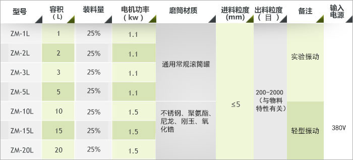 四、振動(dòng)磨機(jī)參數(shù)